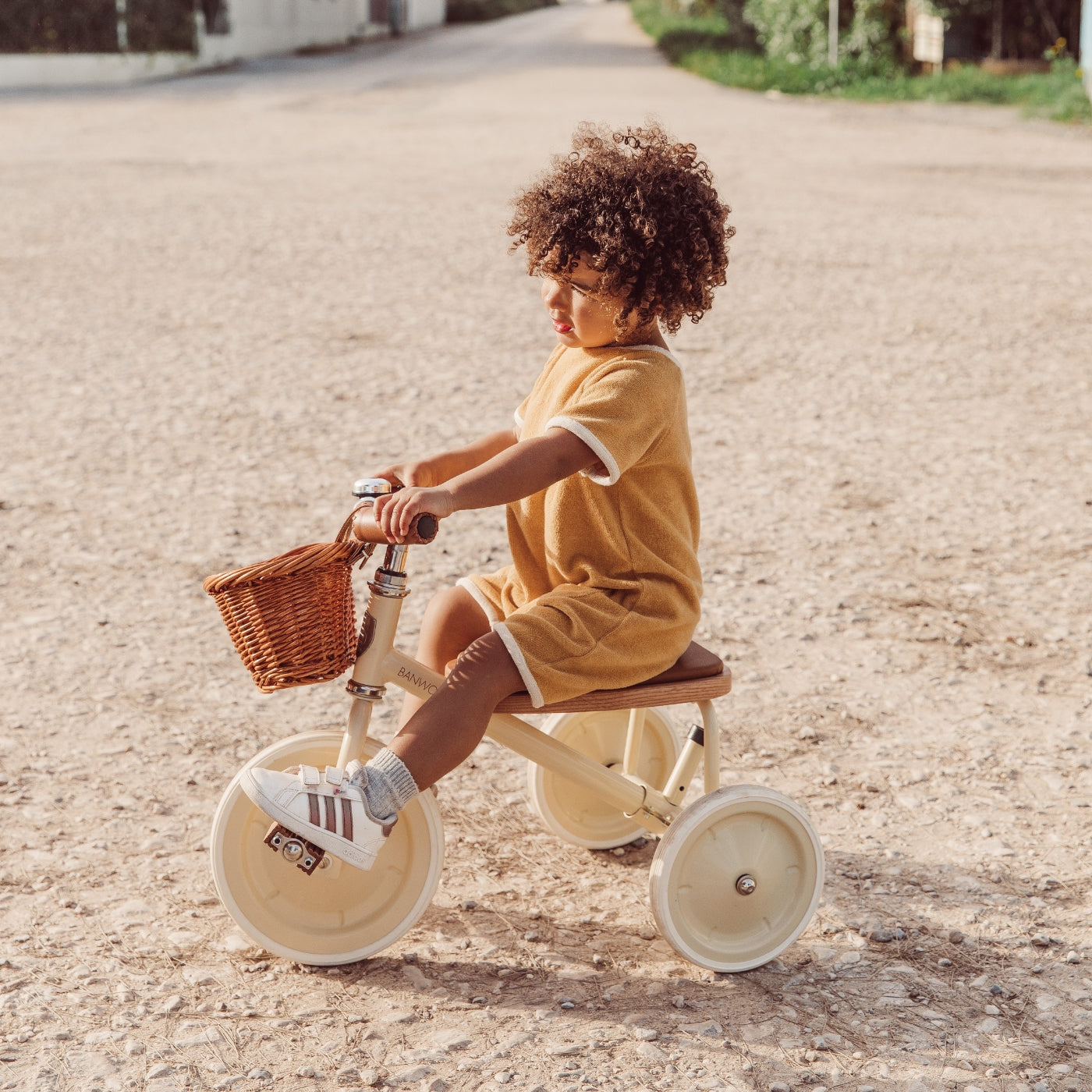 Featuring an adjustable saddle and handlebar that can be easily regulated as your child grows, durable vegan leather grips for a firm hold, and a detachable wicker basket to bring along their favorite toys for a day’s adventure. For a perfectly coordinated ride, you can pair the 12-inch bicycle with one of our classic helmets in matching colors.